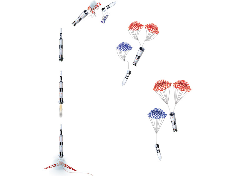 Balení obsahuje: tubusy, špici, padáky, držák motoru, stabilizátory, samolepky, maketové prvky, návod CZ, manuál EN.