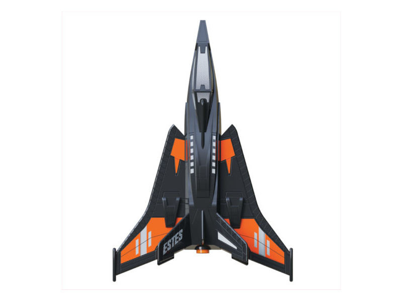 Model rakety sci-fi bojové stíhačky Estes Space Corps Centurion Launch Set s odpalovací rampou a elektrický odpalovačem. Raketa je na raketové motory řady A, B, C a dosáhne výšky až 213 metrů. K zemi se bezpečně snese na padáku.