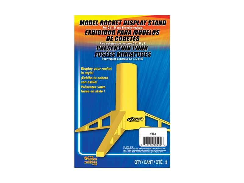 Stojánek na rakety Estes slouží pro uskladnění rakety s trubkou BT50 (vnitřní průměr 24,1 mm/vnější 24,8 mm), nebo raketové motory C11, D, E.