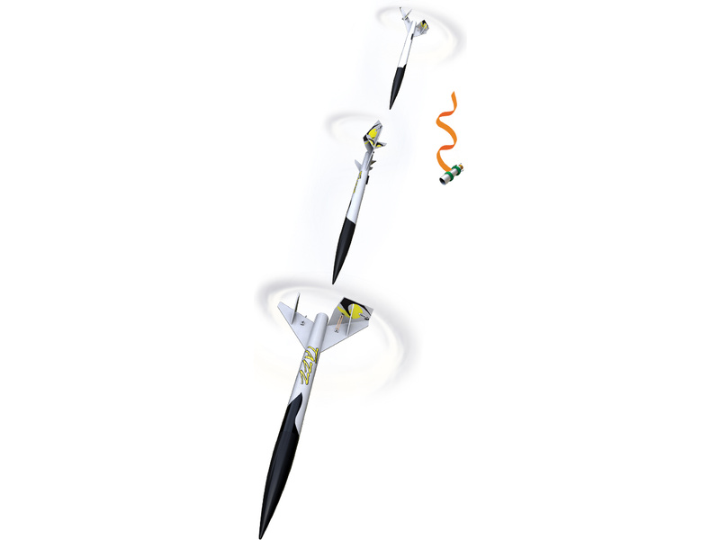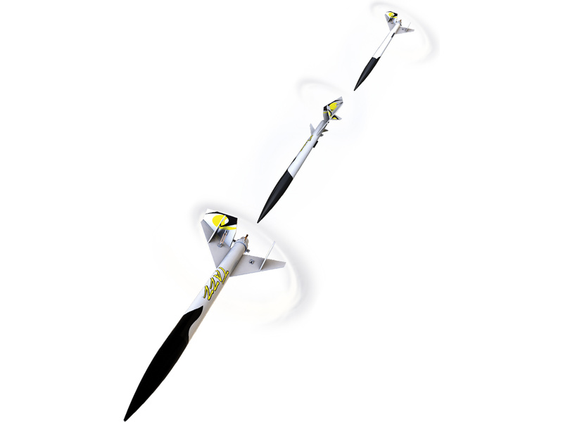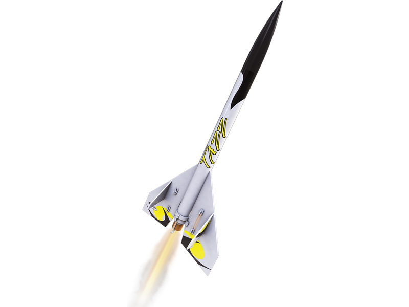 Model raketyEstes Tazz Kit, na raketové motory řady A - C. Po dosažení maximální výšky se odpojí část motoru, čímž se uvolní klapka na stabilizátoru a raketa ve vývrtce zamíří k zemi. Návrat motoru pomocí stuhy.