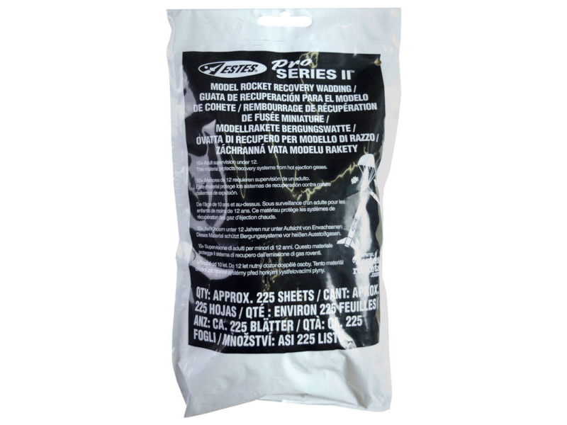 Ucpávka výmetu padáku Estes - Pro Series II, slouží pro bezpečný výmet návratového zařízení z modelu rakety ( v balení přibližně 225 kousků. ). Pro 10-12 startů raket Pro Series II.
