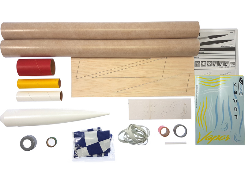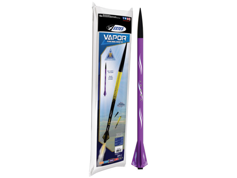 Model rakety Estes Vapor Kit na raketový motor řady D a E, vyletí do výšky až 274 metrů. Model se na zem hladce snese díky padáku. Raketa je vhodná pro pokročilé modeláře, kteří mají se stavbou pro odpálením zkušenosti.