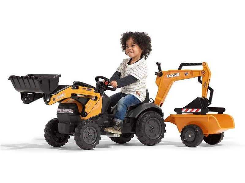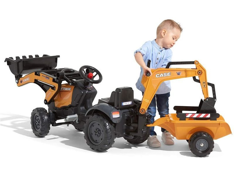 Šlapací traktor Case IH Beckhoe s nakladačem, rypadlem a vlečkou, od Francouzského výrobce FALK. Realistická kopie známe značky traktoru z kvalitního odolného plastu s ohledem na zdraví dětí. Vhodné pro děti od 2 do 5 let.