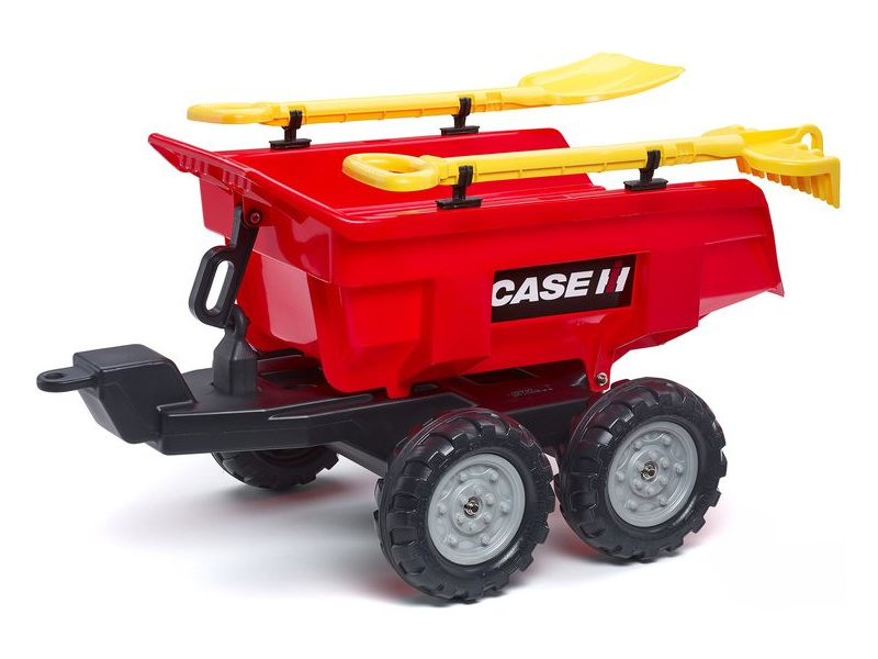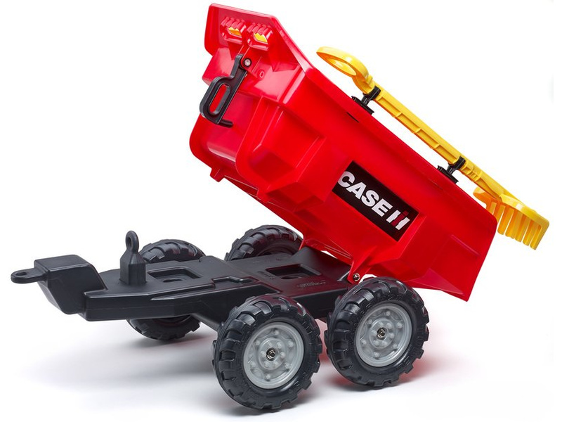 FALK - Vlečka Maxi sklápěcí s nářadím. Díky háčku na hrabičkách lze vlečku táhnout a využívat samostatně, nebo jí můžete připojit za šlapací traktor Falk. Dvou-nápravová vlečka je výklopná a obsahuje lopatu a hrábě, které mají přesně své místo na vlečce. Vyrobeno ve Francii, z odolného plastu. Věk: 3-7 let.
