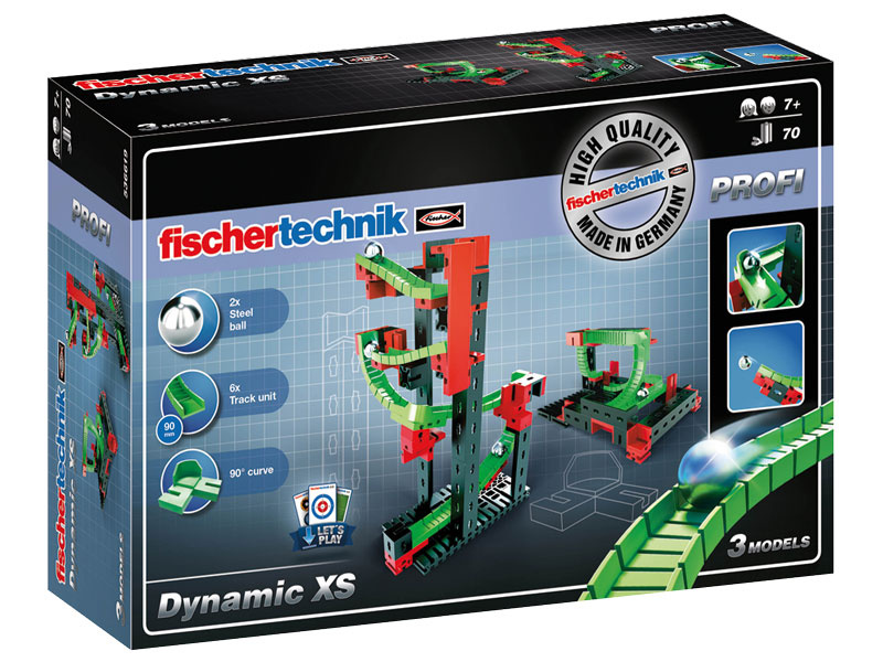 Fischertechnik Dynamic XS je kvalitní stavebnice pro holky i kluky. Dynamic XS zabaví Vaše děti na dlouhé chvíle. Stavebnice nabízí 3 kuličkové dráhy, které otestují šikovnost vašich dětí. Dovednostní dráha s vedením ručním kuličky, střelba kuličkou přes kruhový terč nebo strefování do cíle děti pobaví i poučí. Vhodné pro děti od 7 let.
