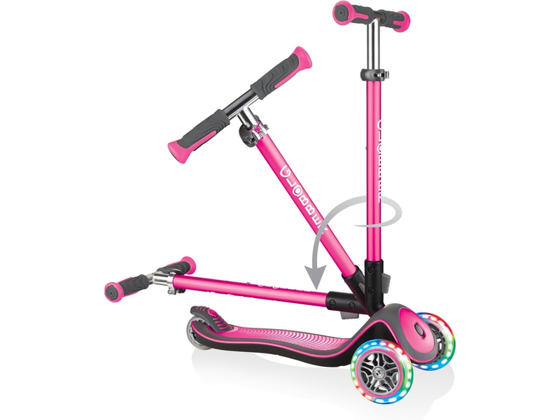 Koloběžka Elite Deluxe Lights od firmy Globber patří mezi světovou elitu v segmentu koloběžek, je určena pro děti od 3 do 9 let. Ergonomické tělo, svítící kolečka, patentovaná technologie zatáčení, jednoduchý patentovaný otočný systém skládání, kvalitní ložiska ABEC5.
