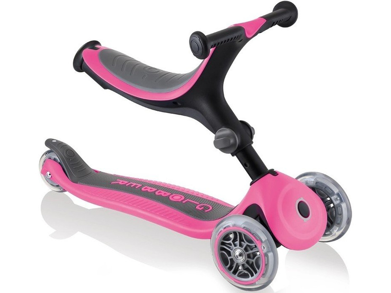 Go-Up je koloběžka a odrážedlo v jednom. Skvělý moderní design s funkčními vlastnostmi s kvalitními koly, zvyšují užitné vlastnosti koloběžky. Díky vzpřímené poloze již nesedí dítě pasivně, ale pracuje s držením těla a posiluje svaly v zádové části. Po odstranění nášlapů a rukojeti, se z posouvadla stává odrážedlo. V tomto stádiu se dítě učí využívat odraz a setrvačnost. Získává základy k udržení rovnováhy. Odmontováním sedáku a namontování řídítek lze za pár vteřin vytvořit výbornou koloběžku s nosností až 50 kg. Tato koloběžka poslouží dětem až do sedmi let. Koloběžka je navíc skládací a snadno se přenáší, transportuje a uskladní.