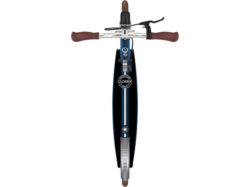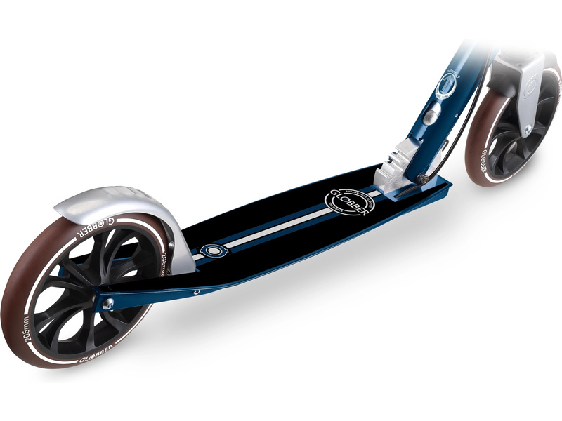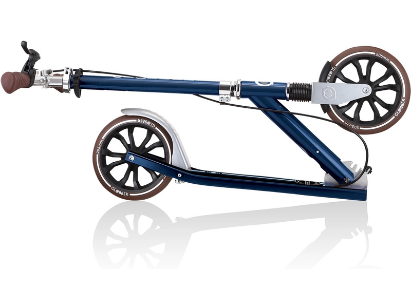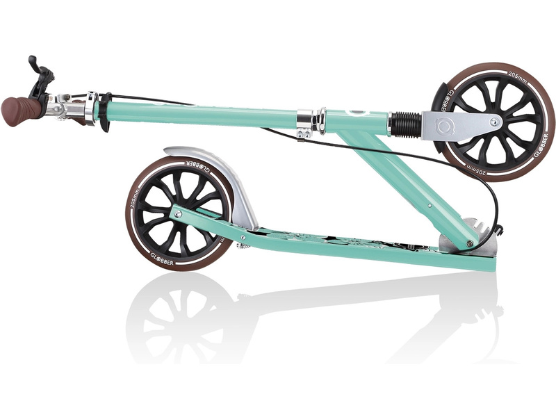 Globber - Koloběžka NL 205 Deluxe pro děti od 8 let, teenagery i dospělé s nosností až 100kg. Skládací systém, skládací řídítka, odpružené přední kolo, ruční brzda na řídítkách (zadní). PU kola 205 mm jsou osazena kuličkovými ložisky ABEC 7. Elegantní retro vintage vzhled.