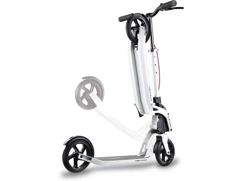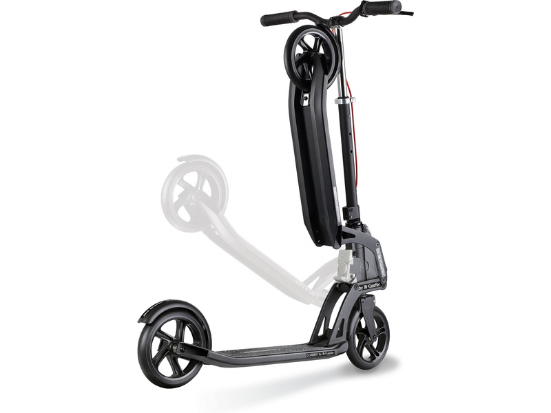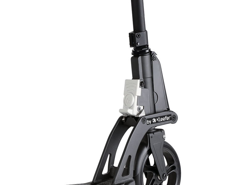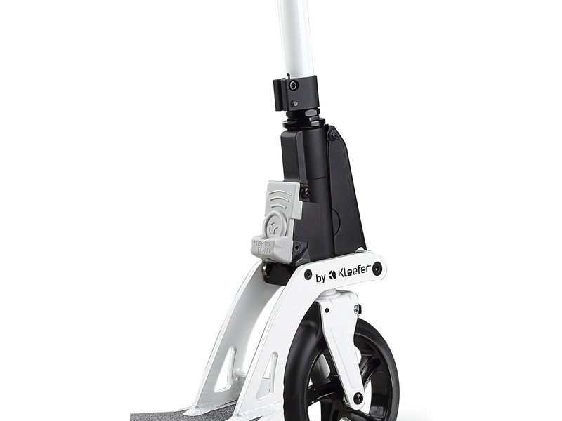 Koloběžka je vybavena unikátním skládacím systémem. Patentovaný píst usnadní a urychlí skládání. Stačí jen "kopnout" do tlačítka a koloběžka je během jedné sekundy složena. Koloběžka se tak dostane do velmi kompaktního tvaru, složenou ji můžete snadno převážet, uskladnit nebo vést za sebou.
