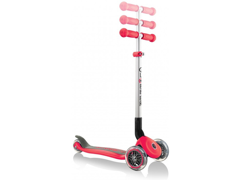 Unikátní koloběžka Primo od firmy Globber, je určena pro větší děti od 3 let do hmotnosti 50kg. Skládá se stisknutím knoflíku a vytažením řídítek, má ergonomickou nášlapnou část s protiskluzovou vrstvou a ocelovým profilem. Brzda z kompozitního materiálu, velká kolečka 121mm, kvalitní materiály, patentovaná technologie zatáčení. Kolečka z odolné gumy, kvalitní ložiska ABEC 5.