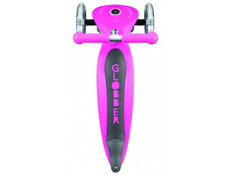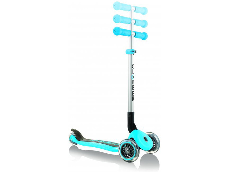Unikátní koloběžka Primo od firmy Globber, je určena pro větší děti od 3 let do hmotnosti 50kg. Skládá se stisknutím knoflíku a vytažením řídítek, má ergonomickou nášlapnou část s protiskluzovou vrstvou a ocelovým profilem. Brzda z kompozitního materiálu, velká kolečka 121mm, kvalitní materiály, patentovaná technologie zatáčení. Kolečka z odolné gumy, kvalitní ložiska ABEC 5.