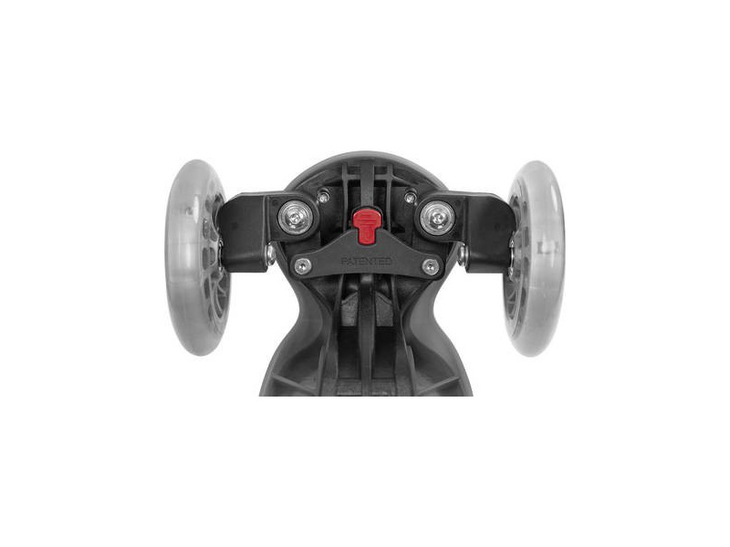 Naučte děti rychleji na koloběžce! Koloběžka je vybavena patentovaným systémem zatáčení s aretačním tlačítkem. Tlačítko zafixuje řízení a koloběžka nezatáčí do stran, tím se děti rychleji naučí držet rovnováhu. Odemknutím tlačítka se aktivuje řízení (pohybe řídítek do stran, zatáčejí kola).