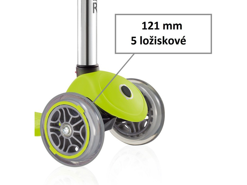 Koloběžky jsou osazeny kolečky s vysoce odolné gumy (Polyuretan) a také ložisky ABEC 5, což je vysloveně výjimka při klasických koloběžkách. ABEC 5 se pro svůj mimořádně nízký valivý odpor používají v profesionálním segmentu. Tím je zaručen mimořádně tichý chod a výborná setrvačnost.
