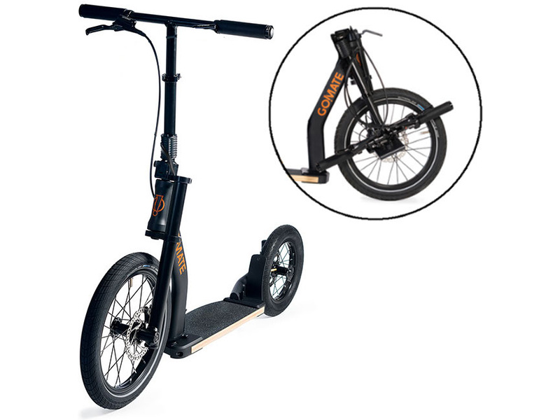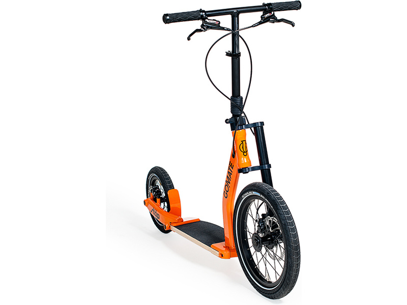 Koloběžka Go!Mate stæp TR1 se zadní brzdou, s jednoduše sklopnými řídítky pro snadný transport. Lehké hliníkové komponenty, bezrámová konstrukce, pružná nášlapná deska. Velká kola s plášti Schwalbe pro komfortní jízdu. Špičková hydraulická zadní kotoučová brzda TEKTRO. Vyrobeno v Německu.
