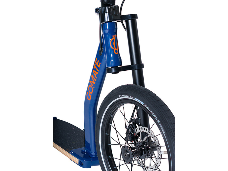 Nášlapná deska z vrstveného dřeva je plně integrovaná do rámu a slouží jako důležitý konstrukční prvek. Právě pružnost této nášlapné desky zajišťuje vysoce komfortní jízdu koloběžky Go!Mate. Tento systém předčí v jízdní vlastnostech i koloběžky s odpruženou vidlicí (odpružená vidlice navíc přidává další váhu).
