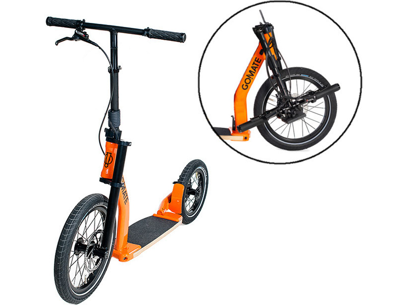 Koloběžka Go!Mate stæp TR1 se zadní brzdou, s jednoduše sklopnými řídítky pro snadný transport. Lehké hliníkové komponenty, bezrámová konstrukce, pružná nášlapná deska. Velká kola s plášti Schwalbe pro komfortní jízdu. Špičková hydraulická zadní kotoučová brzda TEKTRO. Vyrobeno v Německu.