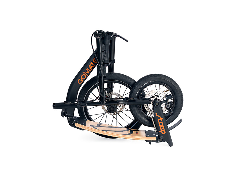 Nášlapná deska z vrstveného dřeva je plně integrovaná do rámu a slouží jako důležitý konstrukční prvek. Právě pružnost této nášlapné desky zajišťuje vysoce komfortní jízdu koloběžky Go!Mate. Tento systém předčí v jízdní vlastnostech i koloběžky s odpruženou vidlicí (odpružená vidlice navíc přidává další váhu).