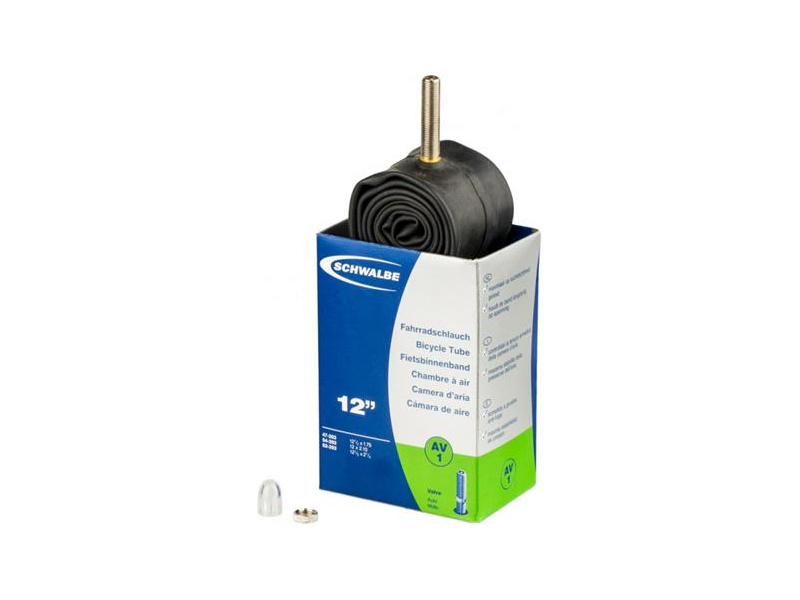 Go!Mate duše 12" Schwalbe AV1 47/62-203, osazena auto ventilkem AV 40 mm. Materiál duše: butyl.