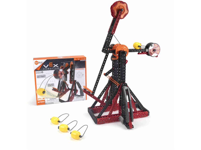 Stavebnice HEXBUG VEX Robotics - Vrhací katapult, na kterém děti hravou formou pochopí fyzikální principy tohoto mechanismu. Postavte si plně funkční zmenšeninu středověkého katapultu sestaveného z 310 dílků, který vrhá plastové sudy až do vzdálenosti 6 metrů. Vhodné pro děti od 14 let.