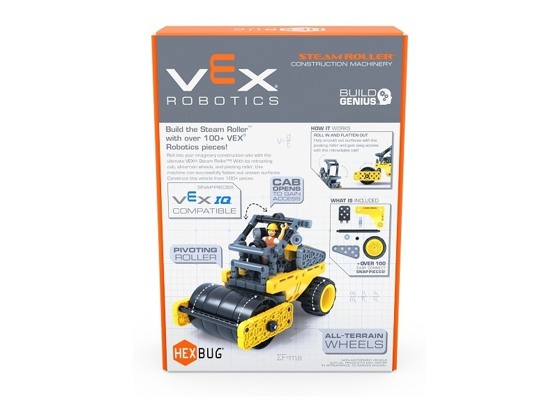 Zábavná a naučná stavebnice HEXBUG VEX - Válec. Postavte si toto stavební vozidlo z více než 100 dílků. Naučte se, jak tento stroj funguje a ovládejte jej stejně jako skutečný řidič válce. Vhodné pro děti od 8 let.