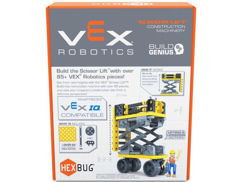 Zábavná a naučná stavebnice HEXBUG VEX - Zvedací plošina. Postavte si model funkční zvedací plošiny a rozšiřte svůj stavební park o další užitečný stroj. Naučte se, jak tento stroj funguje Vhodné pro děti od 8 let.