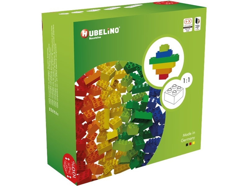 - Kostky Hubelino - obsahují pouze základní základní kostky - neobsahují tedy dílky pro kuličkovou dráhu. K dispozici je set se 105 základními kostkami a další.