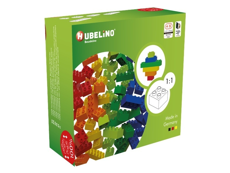 - Kostky Hubelino - obsahují pouze základní základní kostky - neobsahují tedy dílky pro kuličkovou dráhu. K dispozici je set se 105 základními kostkami a další.