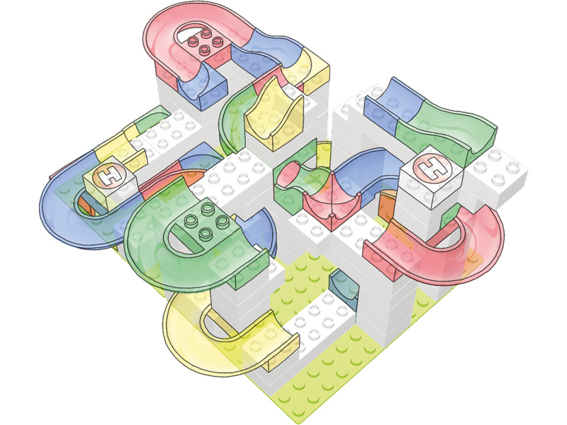 Bílé stavební bloky poskytují ideální kontrast s barevnými prvky a pomáhají rychle a jasně odlišit stavební bloky od prvků dráhy. Takto promyšlený barevný koncept také poskytuje mladým stavitelům lepší orientaci a strukturu - jak při stavbě, tak při úklidu.