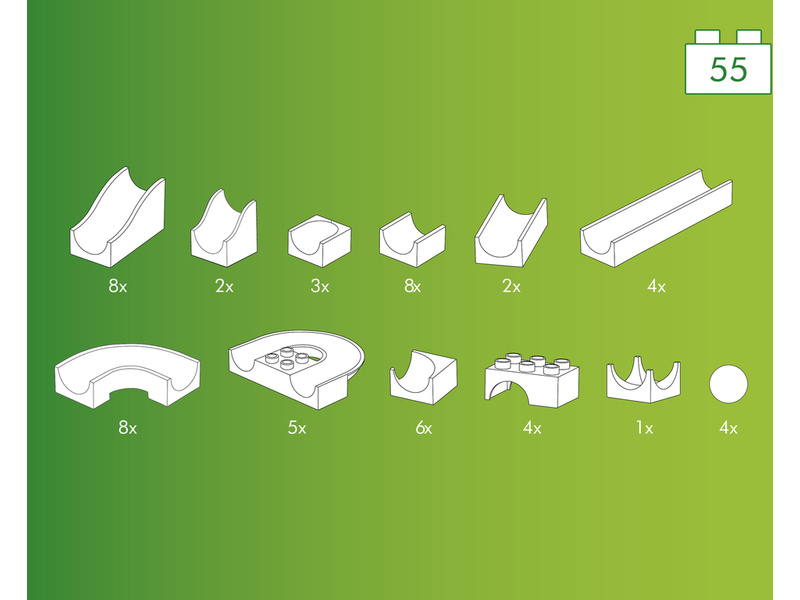 Kuličková dráha Hubelino obsahuje: 51 stavebních dílků, 4 kuličky.