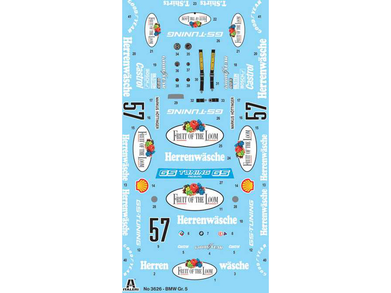 Plastikový model Italeri 3626 - závodní auto BMW Gr. 5 v měřítku 1:24 ke slepení. Délka modelu 199 mm, obtížnost 3. Balení obsahuje nádherné obtisky.