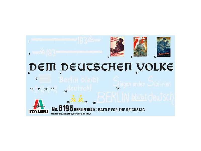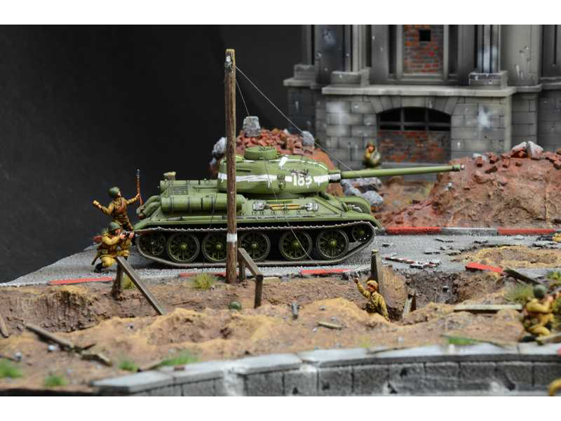 Plastikový model Italeri 6195 - diorama Bitva o Berlín 1945 v měřítku 1:72 ke slepení. Velikost modelu je 680 x 300 mm, obtížnost 3.