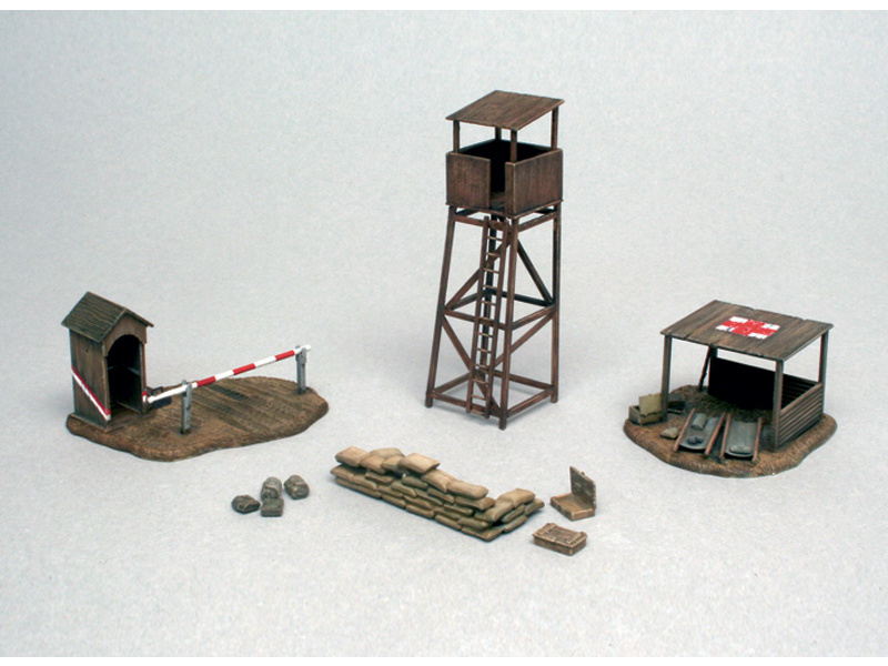 Budovy bojiště ( vyvýšená rozhledna, sanitní místo, pytle s pískem …)
