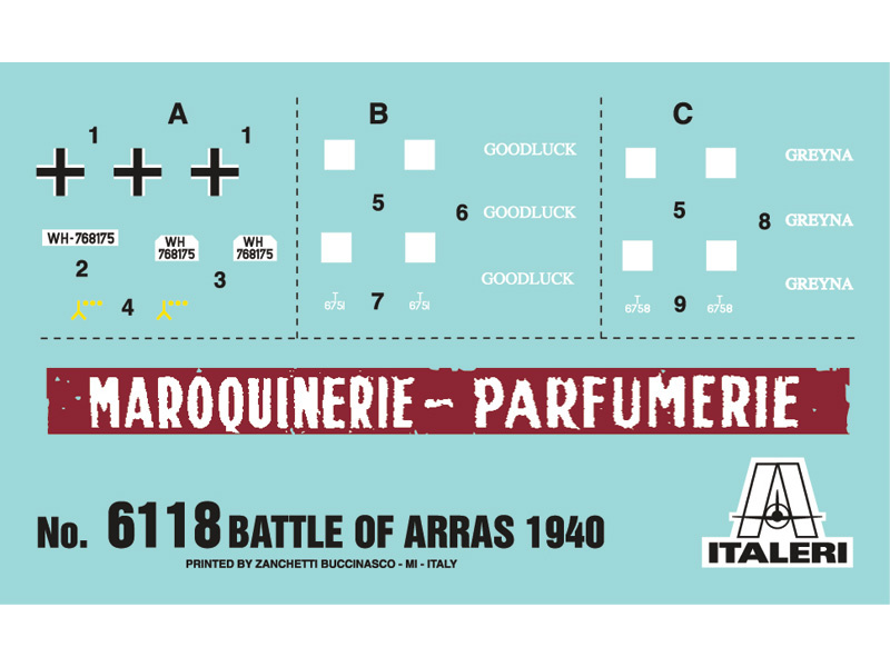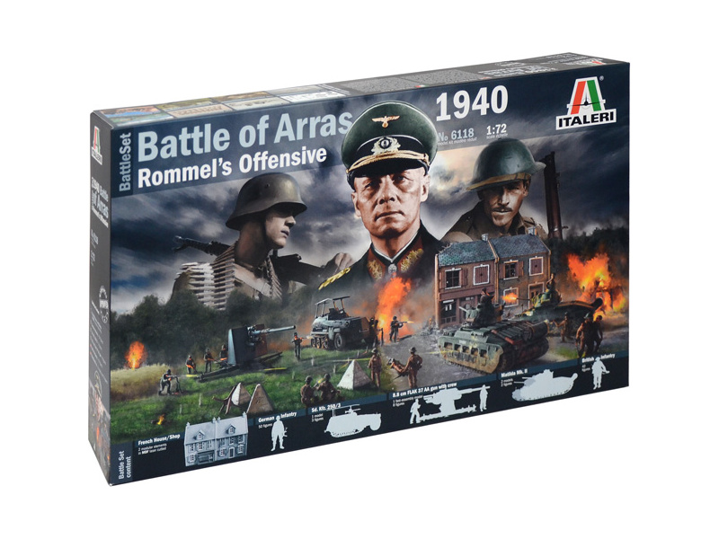 Plastikový model Italeri 6118 - diorama bitvy u Arrasu 1940 – Rommelova ofenzíva v měřítku 1:72 ke slepení. Obtížnost 2.