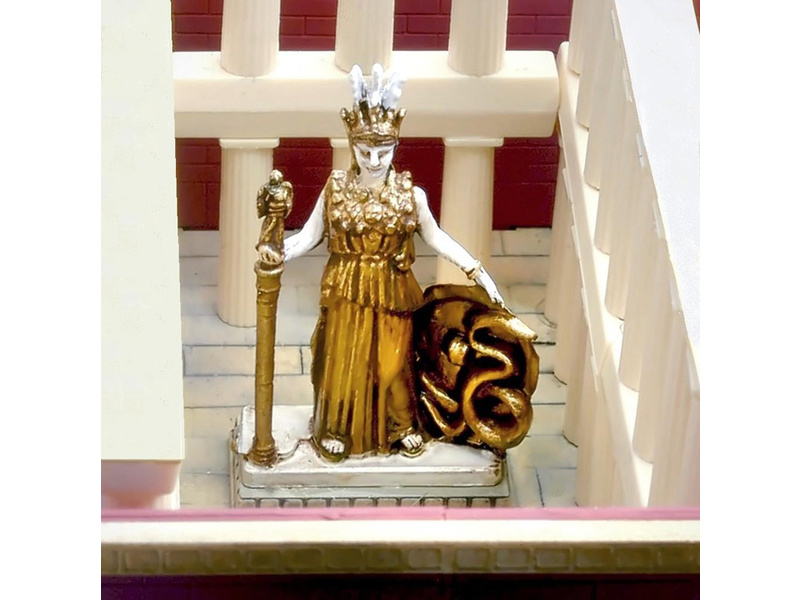 - Socha Athény Parthènos, dekorace, mramor, podlahy a sloupy.