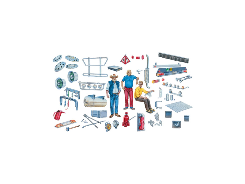Sada doplňující plastikové modely kamiónů. Italeri 0720 - doplňky - příslušenství ke kamiónu v měřítku 1:24.