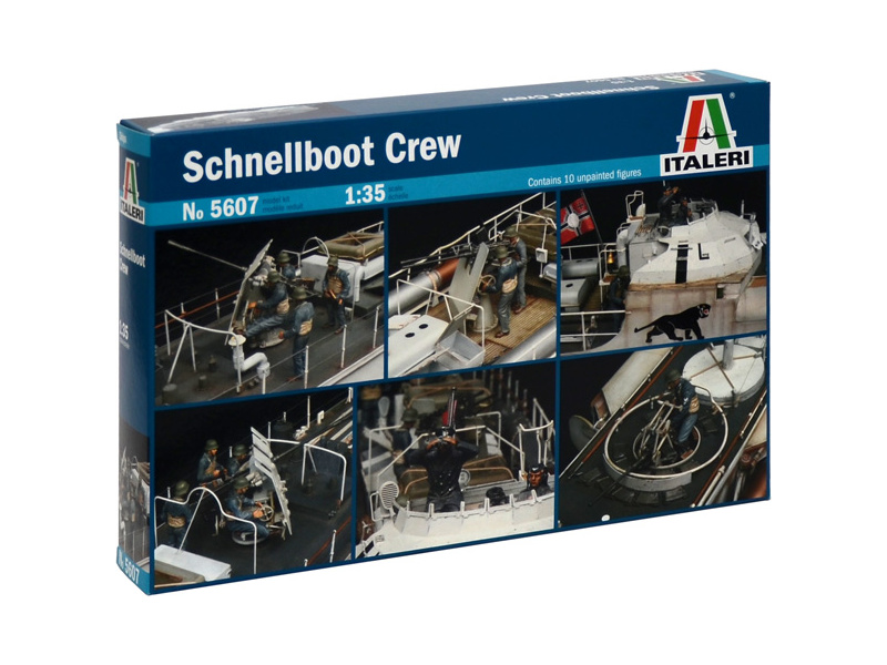 Plastikový model Italeri 5607 - figurky SCHNELLBOOT CREW v měřítku 1:35. Balení obsahuje kompletní sadu s 10 členy posádky, díky nimž bude váš model Schnellbot ještě realističtější. Obtížnost 2.