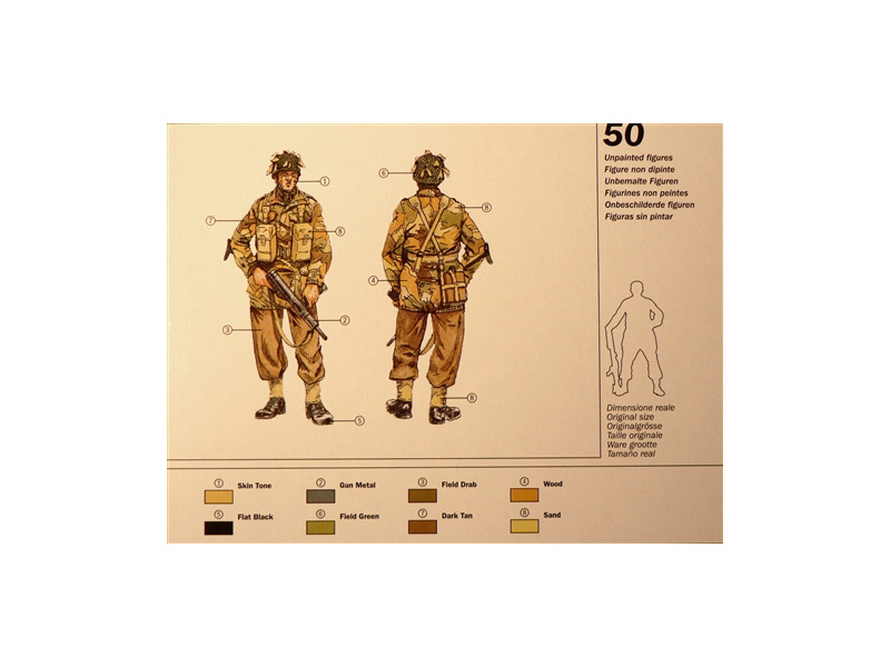 Sada doplňující plastikové modely Italeri 6034 - figurky WWII BRITISH PARATROOPERS v měřítku 1:72. Balení obsahuje 50 figurek. Obtížnost 1.