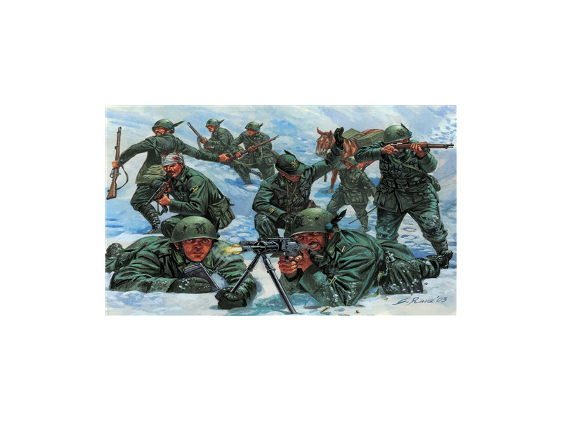 Sada doplňující plastikové modely Italeri 6059 - figurky WWII ITALIAN "ALPINI" v měřítku 1:72. Balení obsahuje 48 figurek. Obtížnost 1.