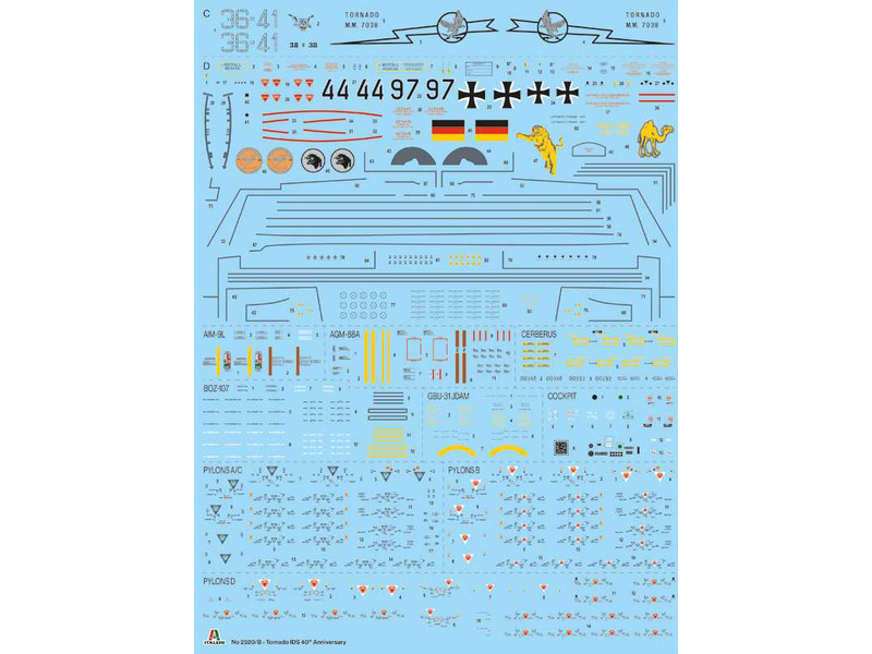 Plastikový model Italeri 2520 – letadlo Panavia Tornado IDS 40. výročí v měřítku 1:32 ke slepení. Délka modelu 521 mm, obtížnost 5. Balení obsahuje SKVĚLÉ OBTISKY PRO 4 VERZE.