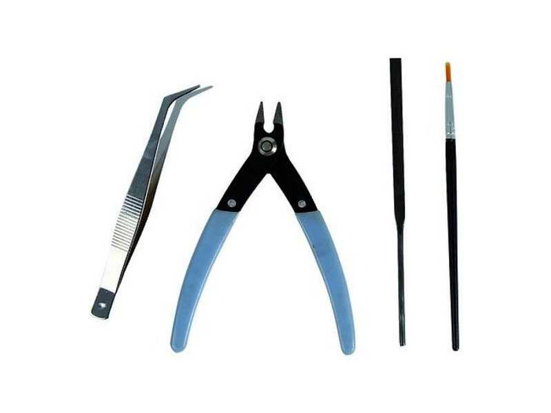 Malá sada nářadí pro začátečníky užitečná pro usnadnění správné montáže stavebnice. Sada obsahuje kleštičky pro vystřihování částí z rámečků, pinzeta, pilník a štěteček.