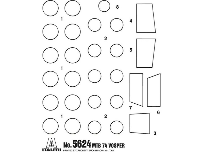 Plastikový model Italeri 5624 - loď Vosper MTB 74 s posádkou v měřítku 1:35 ke slepení. Délka modelu 655 mm, obtížnost 5. Balení obsahuje 7 FIGUREK, SKVĚLÉ OBTISKY PRO 1 VERZI, KOVOVÉ DÍLY, PRŮHLEDNÉ DÍLY, ŠROUBKY A PROVÁZKY.