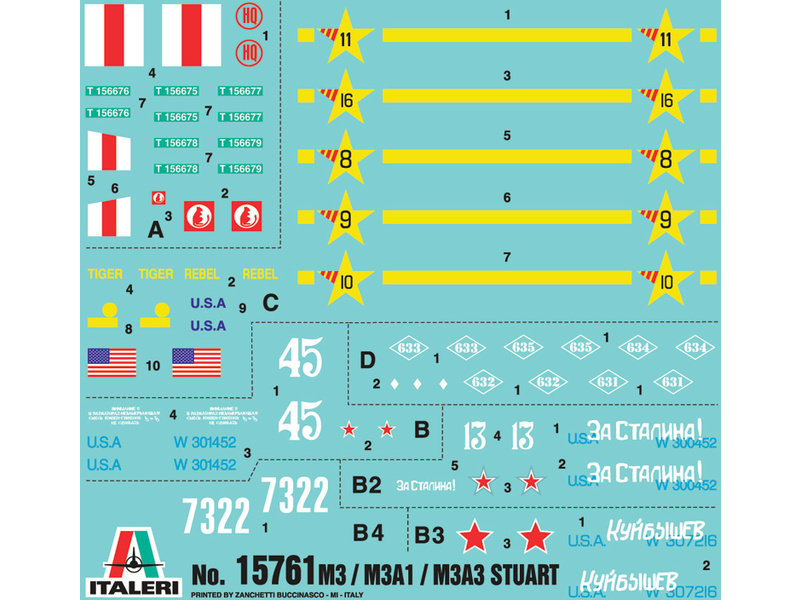 Plastikový model Italeri 15761 - Wargames - tank M3/M3A1 Stuart v měřítku 1:56 ke slepení. Obtížnost 2. Balení obsahuje SKVĚLÉ OBTISKY PRO 4 VERZE.