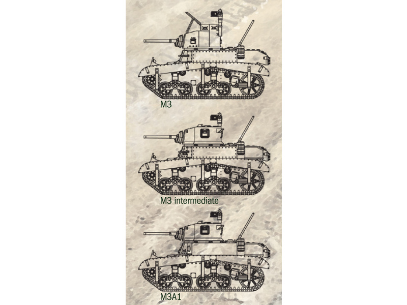Lehký tank M-3 Stuart se začal vyrábět pro americkou armádu od začátku roku 1941. Poháněn vzduchem chlazeným motorem o výkonu 250 hp byl schopen dosáhnout rychlosti 60 km / h. Byl používán ve velkém množství při středomořské válečné operaci Torch, při americkém přistání v severní Africe. M-3 se vyznačoval relativně lehkým pancířem pouze 45 mm. Hlavní výzbroj se skládala z 37 mm děla, které bylo příliš malé na to, aby proniklo do brnění středních a těžkých tanků Osy. Po neúspěších získaných proti německým tankům, byl používán téměř výlučně pro průzkumné úkoly.