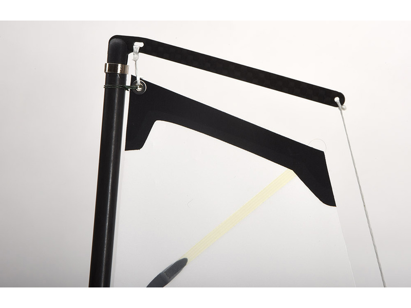 Hlavní plachta je vyrobena z 50 mikronového Mylar filmu, na hlavě je vyztužena vrcholovou výztuhou a vypnuta ke spodnímu ráhnu.