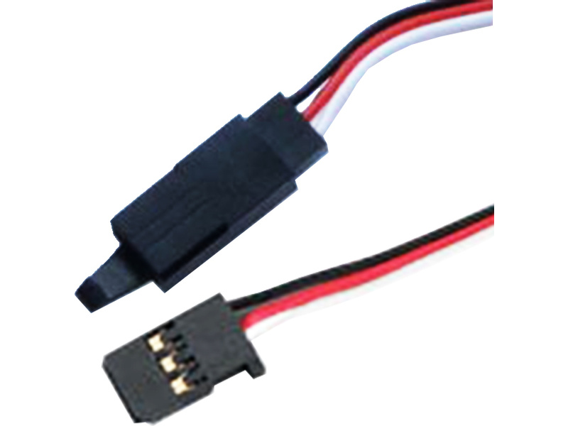 Prodlužka servo kabelu Spektrum/JR/Hitec s bezpečnostním klipem délky 50 cm. Průřez vodičů 22 AWG (0.33 mm²), hmotnost 7.8 g. Bezpečnostní klip zamezí rozpojení servo kabelu.