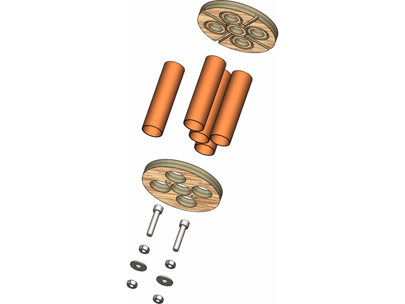 Stavebnice Klima Držák motoru má 5 ks trubky o délce 75 mm a průměru 18 mm je určena do větších raket o průměru 75 mm s pěti 18 mm raketovými motory, kroužky mají průměr 72,4 mm.