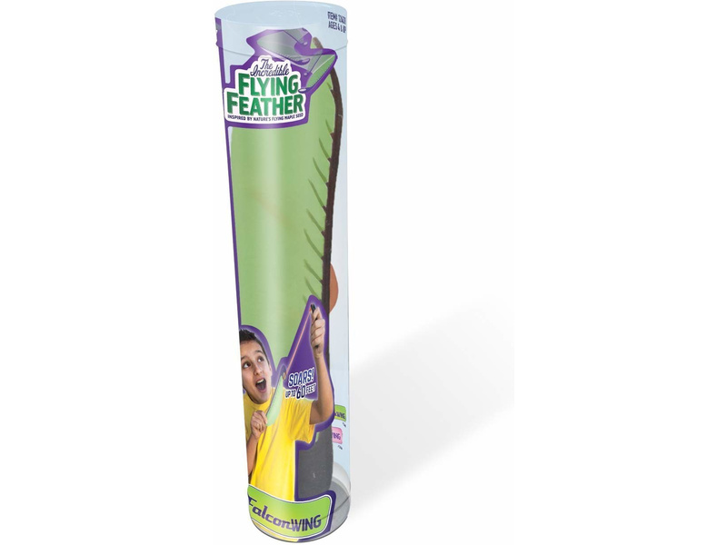 Klima Flying Feather - sokolí křídlo, které vystřelíte pomocí ručky s gumou do výšky až 10 metrů a poté se pomalu snese dolů jako rotující křídlo. Vhodné pro děti od 3 let.