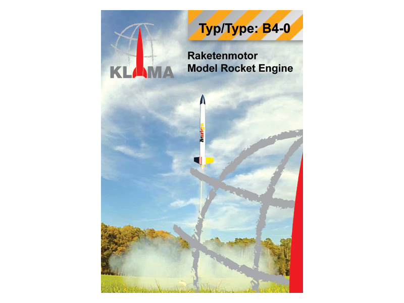 Raketový motor Klima B4-0 EL pro modely raket. Rozměr raketového motorku ø18 x 70 mm, impuls 5 N·s, průměrný tah E2 N, doba hoření 1.3 s, zpoždění výmetu 0 s. Hmotnost motorku 15.8 g, hmotnost náplně 5 g. Maximální doporučená hmotnost modelu rakety je 90 g.