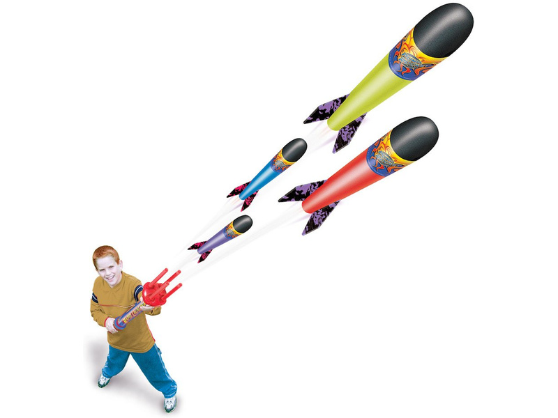 Klima Rapid Launcher - odpalte rakety s pěnovými špicemi až do výšky 20 metrů z ruční vystřelovače. Po každé vystřelené raketě otočte hlavicí a vystřelte hned další. Vhodné pro děti od 8 let.
