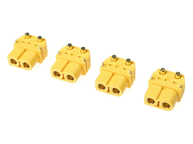 Zlacený konektor XT-60PW samice do plošných spojů. Balení obsahuje 4 ks.